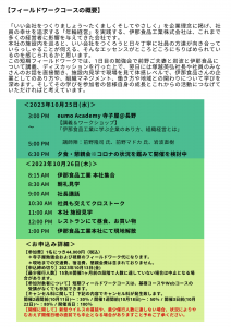 昨年、前野先生と島田由香さんを講師に迎え行った、3つの企業の視察企画を今年も開催予定です。