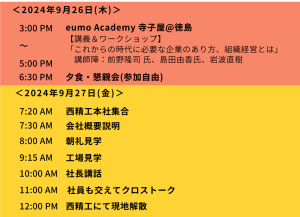 【西精工株式会社】「eumo Academy短期フィールドワーク2024~前野先生と島田由香さんと巡るウェルビーイングな組織~」開催のお知らせ